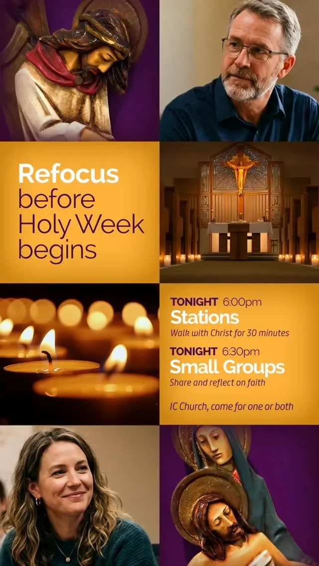Spend 30 minutes walking with Christ, then stay to share and reflect on faith with other parishioners. Both take place at IC Church • Attend one or both.